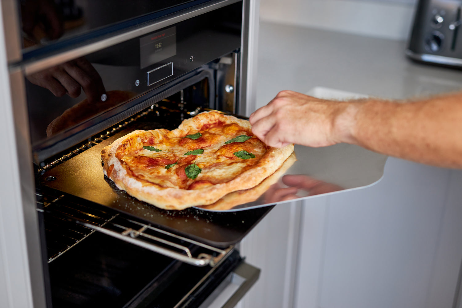 A steady base + a clean slide = the pizza goes in exactly how you built it.